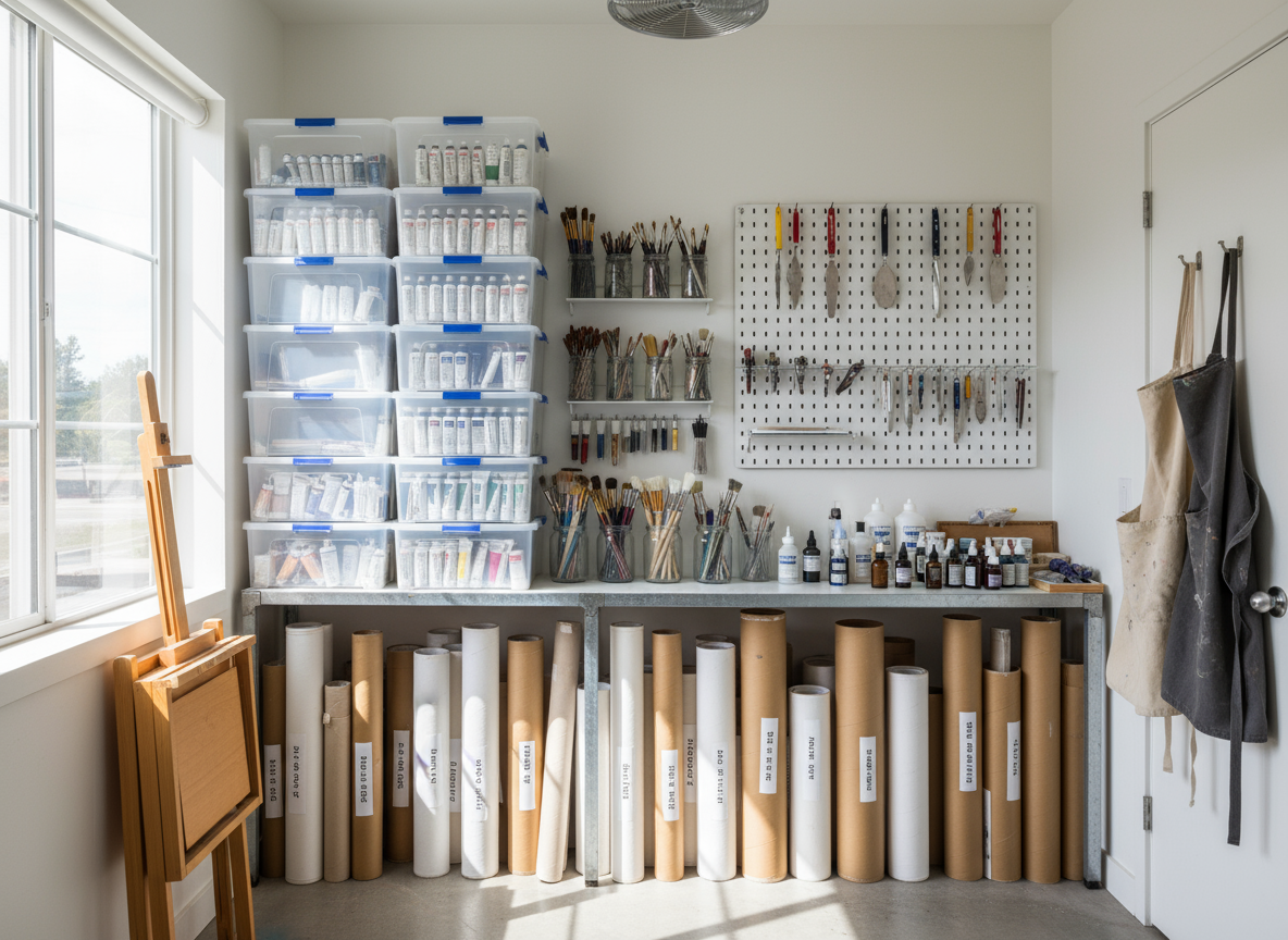Firefly_Gemini Flash_-Artist’s storage area with acrylic and oil paint tubes organized in clear plastic co 520499 by Ben Lowe | Nov 7, 2025 | 0 comments Submit a Comment Cancel replyYour email address will not be published. Required fields are marked *Comment * Name * Email * Website Save my name, email, and website in this browser for the next time I comment.